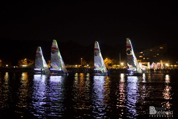 Piątkowy wieczór na gdyńskiej plaży, wypełniony został spektakularnym wydarzeniem żeglarskim. Energa Night Race po raz trzeci przyciągnął tłumy kibiców, którzy podziwiać mogli najlepszych polskich zawodników klasy 49er w wyjątkowym wyścigu nocnym. Rywalizację zwyciężyli brązowi medaliści mistrzostw Europy Łukasz Przybytek i Paweł Kołodziński, którzy również nie dali szans swoim rywalom w pierwszym dniu oficjalnej rywalizacji.