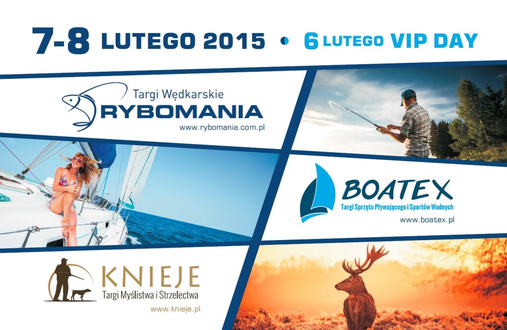 PRZYPOMINAMY!Targi KNIEJE, RYBOMANIA i BOATEX rozpoczynają się dniem branżowym 6 lutego 2015 roku. Bramy dla szerokiej publiczności otwarte będą w sobotę i w niedzielę 7-8 lutego 2015 r. Szczegółowy program wydarzeń oraz plan ekspozycji dostępne są na stronach www.knieje.pl, www.boatex.pl oraz www.rybomania.com.pl.