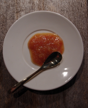 Kilka pomarańczy, mogą być „nie pierwszej świeżości” (to nie przeszkadza, a nawet pomaga, bowiem w tym dżemie istotna jest odrobina goryczki), należy obrać ze skóry, a miąższ pokroić drobno i umieścić w rondlu o grubym dnie. Dodajemy do tego wyciśnięty z jednej lub dwu pomarańczy sok. Całość posypujemy cukrem, można także dodać trochę świeżego startego imbiru lub, jeśli ktoś lubi ostre dżemy, odrobinę chili. Rondel stawiamy na niewielkim ogniu i smażymy, od czasu do czasu mieszając. W trakcie smażenia kosztujemy, czy nasz dżem jest dostatecznie słodki, jeśli nie - dosypujemy cukier. Gdy większa część płynu odparuje, a dżem zacznie być już całkiem gęsty, kończymy smażenie. Tak przygotowany dżem nie nadaje się oczywiście do długiego przechowywania, ale jest łatwy w przygotowaniu, nawet podczas rejsu jachtem.