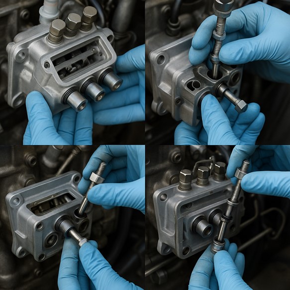 Porada 4. Zatarcie pompy wtryskowej (tłoczkowej) z powodu zanieczyszczeń w paliwie. To już nieco większa praca. Ale do wykonania w morzu. Oto dobra praktyka. Nie kręćcie kołami napędu po zdjęciu pompy z silnika - bo możecie mieć potem kłopoty z ustawieniem kąta wtrysku (jeżeli nigdy przedtem tego nie robiliście). Zdejmijcie pompę i odkręćcie pokrywy pompy (to szybka operacja), rozepnijcie listwę zębatą regulacji dawki wtrysku i wyciągnijcie zatarte tłoczki.