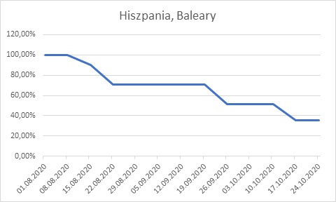 W załączonych wykresach pokazane są zmiany procentowe w cenach czarteru od 1 sierpnia (szczytu) do końca października. Często zmiany w cenach świadczą o zmianie pogody, choć nie jest to regułą - popyt zwiększa np, odbywająca się w tym miejscu impreza żeglarska, a pogoda wtedy niekoniecznie jest lepsza. Oczywiście ceny uzależnione bywają też od świąt i wolnego - na majówkę bywają droższe niż dwa tygodnie później.