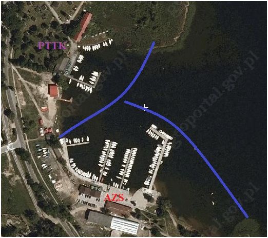 Zarówno port PTTK, jak i AZS są dosyć płytkie, w głębi ich basenów poruszamy się z podniesioną płetwą sterową i mieczową, dostosowując się do głębokości dna. Mając ograniczoną manewrowość zachowujemy szczególną ostrożność podczas wychodzenia z portu, zwracamy uwagę na siłę i kierunek wiatru, oraz możliwą prędkość dryfu. Manewry planujemy z wyprzedzeniem. Gdy już miniemy główki portu, warto popłynąć przez chwilę w kierunku południowo-wschodnim i postawić żagle.