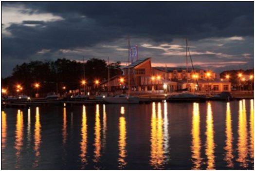 To wzmocnienie długiego mola, będącego zarazem falochronem osłaniającym rozległy port jachtowy. Ten port to rzecz jasna Ekomarina w Giżycku, najnowocześniejszy i najwygodniejszy w mojej opinii port Mazur. Port morski przypomina nie tylko ze względu na gwiazdobloki. Skojarzenia rodzi nowoczesna infrastruktura, dostępna po otrzymaniu „PORTKARTY”, oferująca poza toaletą i prysznicem, także kuchnię, zmywalnię naczyń, pralkę, suszarkę i prasowalnię z żelazkiem. Bez zastrzeżeń pracuje także bosmanat, stale dozorujący ruch w porcie i udzielający pomocy już podczas pierwszego etapu zadomawiania. Ekomarina, zgodnie z informacją bosmanatu, dysponuje zaledwie 138 miejscami postojowymi. Zważywszy jednak na rozstaw pomostów, w razie potrzeby mogłaby przyjąć nawet powyżej 200 jachtów. Cena postoju za dobę wynosi 20 zł, oprócz tego trzeba jednak doliczyć po 13 zł od członka załogi za pobyt w porcie. Mimo to pobyt w Ekomarinie uważam za opłacalny.
