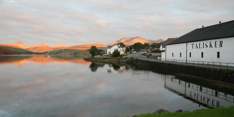 Szkoci pędzą whisky od XI w., ale popularna stała się dopiero po wprowadzeniu podatku przez brytyjski rząd w 1780 roku na czerwone wino, które stało się zbyt drogie dla niezamożnych. Powstało wówczas wiele nielegalnych destylarni whisky. Talisker, jedyna destylarnia whisky na Skye, znajduje się w miejscowości Carbost. Można tam dotrzeć płynąc na południe przez Loch Harport i kotwicząc naprzeciw destylarni. Zwyczajowo, po zwiedzeniu wytwórni, częstuje się turystów szklaneczką "wody życia", jak zwą whisky Szkoci.