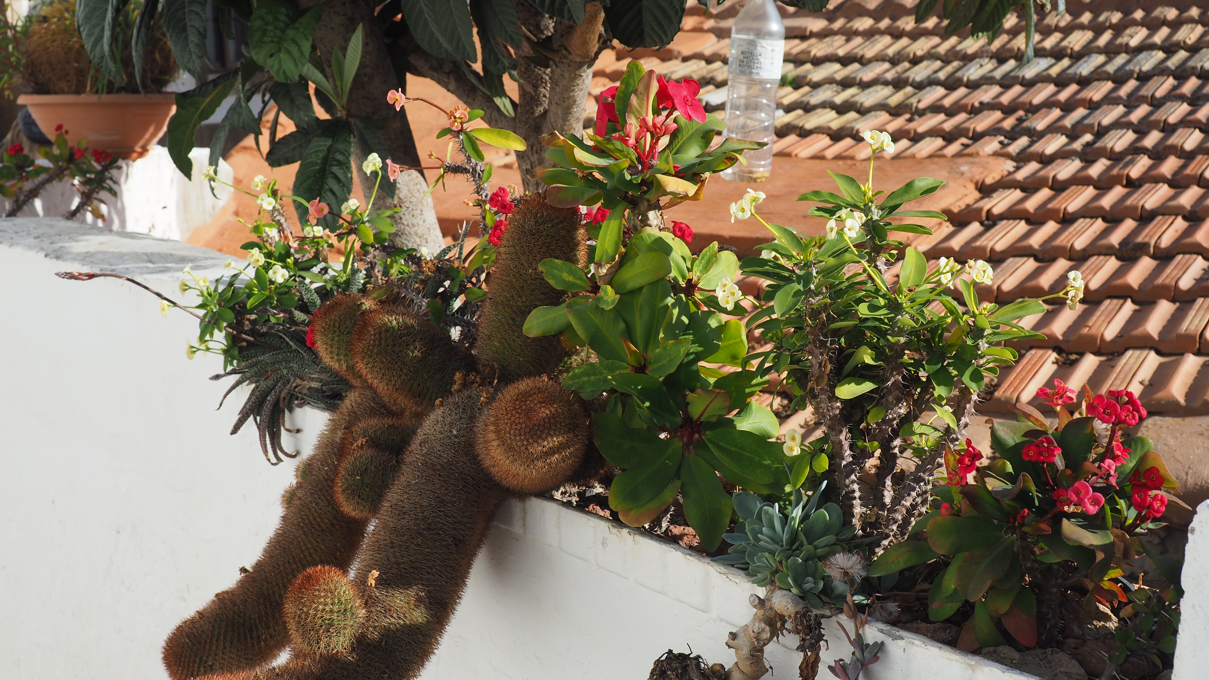 Po śniadaniu dzwonimy do pierwszej z brzegu wypożyczalni aut. Nasza załoga jedzie w komplecie, druga w niepełnym składzie. Wyspa bardzo zielona, roślinność i kwiaty aż biją w oczy – w końcu styczeń… Drogi, poza autostradą, bardzo wąskie, bez poboczy, ale za to kręte. Pierwszym celem jest Arucas. W miasteczku dominuje kamienna katedra, która wyznacza starą, centralną część miasta. Trochę kłopotów z parkowaniem, ale w końcu mamy miejsce. Kościół i otaczające go uliczki z zabytkowymi kamienicami mają swój klimat. Następnym celem jest Teror. Nazwa miasta nie ma nic wspólnego z klasycznym opisem typowych zachowań kobiet w stosunku do ich partnerów w związkach, nie tylko małżeńskich. Miasto również pełne stromych i krętych uliczek, z pięknym kościółkiem i ładną starówką. Główna ulica to deptak, budynki z przepięknymi ukwieconymi balkonami. Tutaj spotykamy Asię z jej załogą. W takim miejscu są liczne knajpki oraz niestety sklepy z różnorakim badziewiem – co skutecznie zniechęca niewiasty do jakiegokolwiek dalszego zwiedzania. Piwo i kawa w lokalnej kawiarence, jedziemy dalej. Teraz dojeżdżamy na 1956 m npm do najwyżej położonego punktu wyspy – Pico de las Nieves. Wysokość Kasprowego, ale słońce i dodatnia temperatura robi istotną różnicę w styczniu. Przecudne widoki przy znakomitej widoczności. Jedziemy dalej na południe wyspy. Fataga to malutka wioseczka przypominająca nieco Mascę, ale ma inny klimat. Przepiękne kamienne domki, bardzo wąskie uliczki, wszyscy jesteśmy urzeczeni. Tutaj też jemy wyśmienity obiad w Bar el Labrador. Takiego jedzenia jeszcze tutaj nie mieliśmy, Wszystko znakomite, a najlepsza koza, którą niektórzy przeżuwali po raz pierwszy w życiu. Poza tym to pierwsza knajpa, gdzie nic nie było przesolone. Do tej pory myśleliśmy, iż sól to narodowy dodatek do wszelkich potraw tych wysp. Dzień zbliża się ku końcowi, mamy jeszcze w planach plażę w Maspalomas. Docieramy na nią tuż po zachodzie słońca. Plaża to hałdy żółtego piasku uformowanego w wydmy. Nieco przypomina Saharę. Stamtąd zresztą pochodzi piasek. Plaża w kształcie półksiężyca, otoczona 5-gwiazdkowymi hotelami. Wieczorem jesteśmy w naszej marinie. Mamy problem z parkowaniem naszego auta, po pół godzinie znajdujemy dla niego jakąś miejscówkę. Drobne zakupy, jakieś drinki na jachcie, jutro o 5. start na Teneryfę. Początkowo chcieliśmy dopłynąć do mariny w Los Gigantes, ale po raz drugi nie ma tam dla nas miejsca. Aśka załatwia jako punkt docelowy macierzystą Del Sur, stamtąd będziemy robić wypady na południowe wybrzeże Teneryfy.